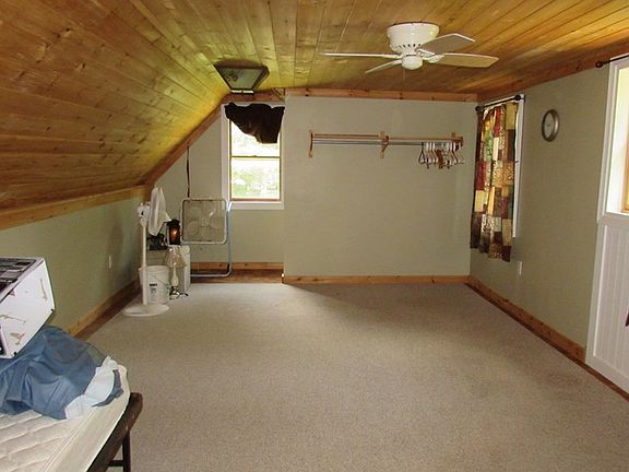 Perfect get away or full time residence. Very well maintained cabin that consists of 1 large loft bedroom, 1 full bath, living, dining room and kitchen. Most contents are included. Large covered porch to enjoy the wildlife and peacefulness. 2 storage buildings. 12.75 level acres that border State Forest. Land has clearings throughout for food plots and lots of trees have been planted for wildlife habitat.