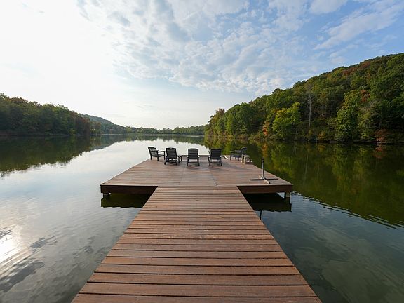 Welcome to the lake! In a region where lake life is enjoyed by many, there is no other lake that you can rightfully call your own and enjoy privately until now. In a league of its own, this property delivers the full package, complete with a turnkey home and one-of-a-kind land features. Secluded on 120± acres at the end of a half-mile dead-end road outside of Sparta, a grand custom-gated entrance sets the stage for what's within. As you approach the incredible 25 +/- acre lake that is stocked with trophy bass, crappie, catfish, and more, you'll immediately feel the thrill of the adventures ahead. The lake is entirely private and features two large coves, three docks, and ample space for activities such as jet skiing, canoeing, fishing, tubing, and swimming from the dock. The lake is in a unique setting surrounded by mature timber and nestled into the heart of the Ozark Mountains. There is no better location to relax, surrounded by the sounds of nature and beautiful views. You can enjoy lounging on the built-in dock hammock or the spacious porch setting. The best part is that this view can be enjoyed for as long as you desire. Just 50 feet from the water sits a beautiful, recently added 2,100 sq. ft. home with four bedrooms, two full baths, and numerous custom finishes, fully turnkey with all furnishings. Built for comfort and entertaining, this home features two living areas and a split floor plan, with the primary suite privately located away from the other bedrooms. As you step outside, you are greeted with a heated, screened-in porch featuring a bar and ample space to relax, along with all the necessary outdoor furnishings. Beneath the porch, there's ample room for kayaks, canoes, and all your lake gear, while a large shop with double electric doors handles everything else. Trails weave through the property for hiking, UTV rides, or horseback adventures, and abundant wildlife-including whitetail, turkey, waterfowl, and resident bald eagles can often be seen. Active springs keep the lake full year-round, and a hidden waterfall on Elkhorn Creek can be enjoyed in all four seasons. The turnkey aspect makes this property move-in ready, complete with new furnishings, so all you need to bring is a swimsuit and a fishing rod to enjoy the property immediately. This property is also very conveniently located between Branson and Springfield for quick access to city amenities.