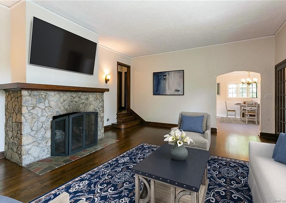 Fantastic opportunity to live in the desired Greenacres section of Scarsdale. Enjoy your morning coffee in the sunshine filled great room with a fabulous stone fireplace or in the adjacent screened in porch leading to the level backyard. Easy flow into every room that has beautiful refinished hardwood floors and walls freshly painted. Master bedroom and additional two bedrooms are all nice sized with ample closets throughout the house with two updated baths. Short walk to the Metro North train station, elementary school, shops and restaurants.