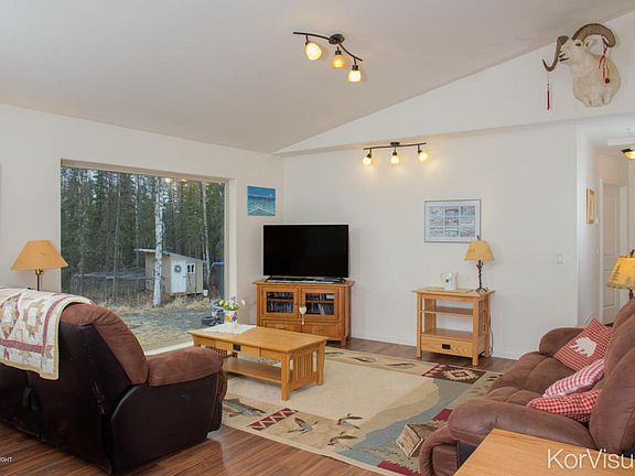 Beautiful, spacious, updated home boasts private backyard views. Bay window and 2nd story back deck overlook Alaskan wildlife on over 2 acres. Amazing location just minutes from downtown Wasilla. Lower lever has potential for MIL or rental w/ hookups for kitchen appliances. Vaulted ceilings, master suite w/ double sinks newer construction. Generous driveway with lots of space for your toys!