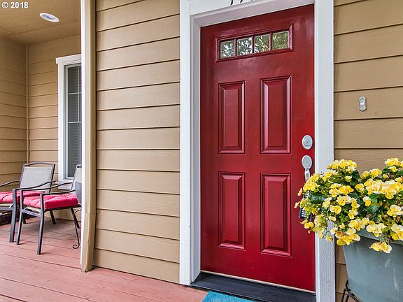 Bright Craftsman Style Townhouse. This rare & bright end unit has amazing light w/ double exposures & great open concept living space. No wonder this used to be the model home! Two master suites upstairs w/ vaulted ceilings, large closets & laundry. Fantastic flex space on lower living area, large 2 car garage w/ tons of storage, cozy front patio & great play area behind home. Min to Nike campus,Costco & much more!