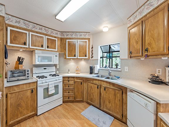 Come experience the peaceful country style living of this 2 bedroom, 2 bathroom manufactured home situated on 2.5 acres! Relax on the covered, wrap around porch w/ MT. SHASTA & LASSEN ALPS VIEWS. Enjoy the morning at the at the kitchen's breakfast bar, or dinner in a spacious dining area. The living room features a wood burning stove and build in wall display storage. The home also includes a detached garage with small shop and carport. BRAND NEW ROOF! Pasture land with room for horses. 10x60 deck with kitchen sink. Garden shed & hay area w/ lighting. RV PARKING & HOOKUPS. You have the pleasures of a country home, but in the city, with room for a 2nd home. This property has so much to offer!!!