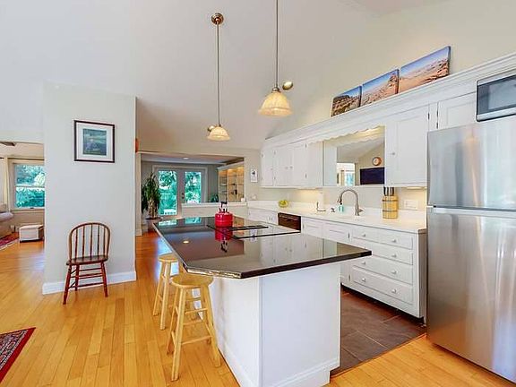 Charming cottage-style home on Shore Road, set on nearly half an acre with privacy, perennial gardens, and southern exposure. Features include an open-concept kitchen and dining area with vaulted ceilings, a cozy living room with wood-burning fireplace, French doors to a private patio, and single-level living. Located near shops, schools, beaches, and Robinson Woods trails. Recent updates include a new roof, septic system, and Jotul wood stove. Pets considered. Water and Sewer