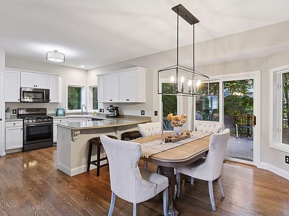 An extraordinary opportunity in Hazeltine Bluffs! Don't miss this beautifully maintained and wonderfully presented two story ideally situated on private wooded lot. Big maple trees will soon burst into their magnificent fall colors providing an amazing bright yellow backyard canopy. Thoughtfully designed with a comfortable layout, warm and inviting spaces, and finished on three levels. Kitchen includes a pantry, windows at sink, and refreshed with black stainless-steel appliances, Cambria countertops, and refaced cabinets. Formal and informal dining options, plus a breakfast bar for those on the go! Easy access to the deck and backyard stamped concrete patio with firepit - the perfect spot to relax in the natural setting. The upper level boasts three secondary bedrooms, an updated full bath, and a stunning primary suite with walk-in closet and pampering bath you won't want to leave! Walkout lower level offers nice guest accommodations with fifth bedroom and new three-quarter bath, a dedicated office providing work from home capability, plus lots of casual space for movies, fun and games. Great Chaska location in close proximity to parks & trails, shopping and major thoroughfares.