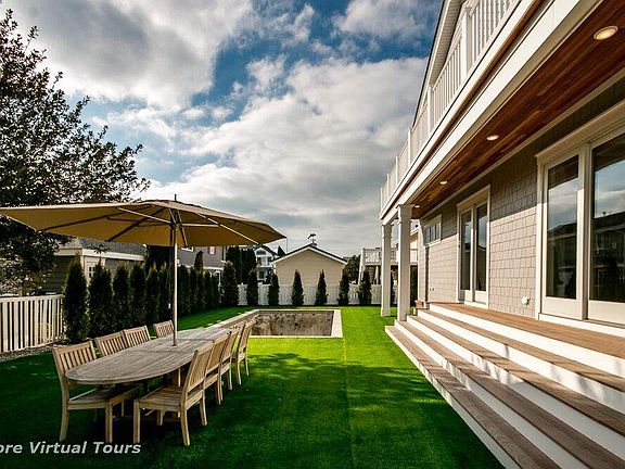 Elegance blends seamlessly with nature and magnificent sunsets at this 4,000 s.f. 6 Bedroom with 6 Full Ensuite Bath, 2 Half Bath Home in South Stone Harbor. Located a block and a half from wide beaches and situated on an oversized 80' x 100' lot this home captures unobstructed southwest bay and wetland views. Enjoy entertaining friends and family in grand style few other properties are able to afford. A large wrap around front deck, off the second floor, offers a panoramic view to the south and west where wildlife flourishes and boats make their way to and from Hereford Inlet, off in the distance. Step inside and marvel at the sheer expanse of the main living room, its vaulted ceilings and the adjacent dining area and kitchen which features hand crafted custom cabinetry, american walnut drawer boxes, custom panel appliances including a 48" Sub-Zero refrigerator, 48" Wolf Range, two Bosch dishwashers and a custom Rangecraft hood. It is truly "kitchen jewelry" at its finest. The list of exquisite features is ubiquitous throughout the property both inside and out. Each of the 6 full baths is custom tiled in exquisite fashion and all feature dual function shower/handheld fixtures by Kohler along with custom vanities and mirrors. Eight foot doors, shiplap paneling, built-in bunks beds, coffered ceilings, grasscloth accents, stone countertops, wire brushed 7.5" oak plank flooring, wireless sound by Bose, motorized blinds by Hunter Douglass and an absolutely fabulous walnut wet bar, with a 36" double drawer Sub-Zero refrigerator / freezer / ice maker and separate Sub-Zero wine reserve which graces the first floor living room, are just a few of the many interior highlights. The exterior was designed and built to take advantage of the the space afforded by such a large lot and the materials used allow for minimal maintenance and maximum enjoyment. The HardiShigle fiber cement siding resembles the classic look of natural cedar but represents a maintenance free alternative and greater protection from the exterior elements. The full brick veneer at the foundation, bluestone front porch, and Brazilian Ipe rear deck stairs were also chosen as all are proven to withstand the test of time in a coastal environment. Eco-friendly and durable "Kentucky" turf is installed around the oversized 12' x 24' heated pool, artfully installed by Avalon Pools, Inc., and along the rear side yards. This maintenance free artificial grass provides a softer and more family friendly outdoor living experience and is on the cutting edge of eco-friendly design.