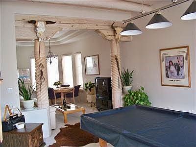 Back on the Market! READY to close! Great Deal at $141 per Sq Ft! Dramatic Entry with Spiral Staircase. Breathtaking City & Mtn Views. Spectacular Master Suite w/Private View Deck,Kiva Fireplace w/Panoramic Sunsets. Master Suite has Sitting Area,Grand Shower,Jetted Tub,Huge Closet. Quality Construction, Immaculate Condition and Custom Accents thru-out. Hand Carved Corbels, Vigas, T&G Beamed Ceilings, Coved Ceiling, Nichos, Kitchen Island, Breakfast Nook. Beautiful Backyard w/Wisteria Gazebo/Pond
