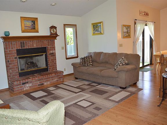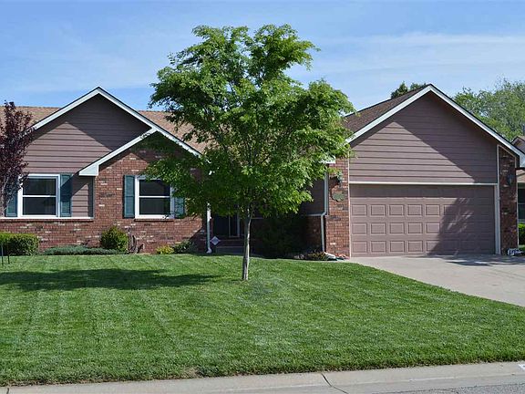 Check out this move in ready ranch in the Goddard School District! The curb appeal is awesome and will welcome you into this home. The living room greets you with a brick fireplace and vaulted ceilings. The floorplan flows smoothly from the living room into the kitchen/dining combo all with wood laminate flooring. The dining area is large enough for your entire family! The kitchen boasts tons of cabinets, plenty of countertop space, an island with an eating bar, and all appliances stay including the microwave! The master bedroom will easily accommodate all of your furnishings. And, the private master bath has double sinks and a walk in closet. Downstairs is the perfect spot to hang out and relax with family and friends. The fourth bedroom, third full bathroom and an additional finished room are downstairs as well. Another feature of this home is that you have the option to have your laundry room on the main floor or in the basement. You pick what is best for you, and the washer and dryer stay with the property! The exterior is very well-maintained. The yard is immaculate with a sprinkler system, and the landscaping is already in place. Don't miss the covered patio area and the walking path just behind the house that spans for miles! With no specials, what more could you ask for? Set up your private showing today!