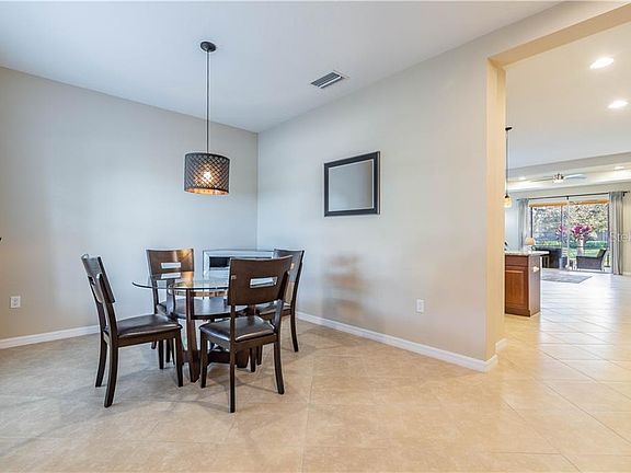 Welcome to your special piece of paradise nestled into the Gated Community of Forest Creek. This 3 bed 2 bath 1,744 sqft home with a den and beautiful water views, is warm and inviting from the moment you pull into the driveway. Prepare to instantly be blown away by the picturesque landscaping, which is only a glimpse of what the rest of this home has to offer. Walking in through the front door, you're greeted with so much opportunity. This room could be a den, office, or even a dining room. Whatever you need, this extra flex space can be just that! With the open concept of the rest of the home, entertaining guests will be a dream. The kitchen offers gorgeous granite countertops, a tasteful tile backsplash, and lovely cabinets complimented by crown molding and under cabinet lighting, all dressed with stainless steel appliances. All of this flows into the spacious living area that boasts ample natural light provided by the sliding doors. The master bedroom provides an en-suite bathroom with an oversized walk-in shower. While being separate from the Master Bedroom, the two extra bedrooms followed by a separate bathroom just across the hall offers more privacy for the master suite. Enjoying the year-round ideal Florida climate in your own personal oasis is a breeze with this sizable screened in patio. The lush landscape surrounding the screened oversized lanai, plus the magnificent water view of the lake just past your vast backyard make for that tropical retreat feeling with sufficient privacy. Forest Creek offers many different amenities to choose from like a community pool with a hot tub, a recreation center with a pool table, a fitness center, a basketball court, and a playground. Whether you're on your own property, or out exploring everything Forest Creek has to offer, you're sure to enjoy yourself!