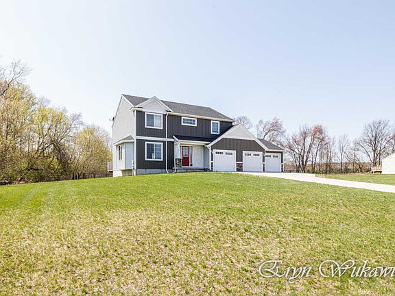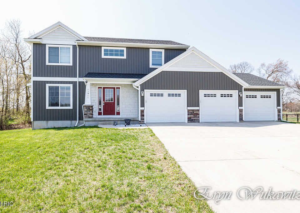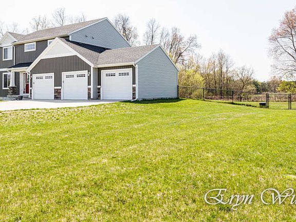 Move in ready home located in a quiet cul-de-sac on over an acre of land. Take advantage of this home being only 5 years old! This 3 bedroom, 2.5 bath home has an open concept main floor, great for entertaining guests. Kitchen features ceramic tile backsplash, granite counter tops, stainless steel appliances, center island and dining room area. Bonus room right off of the kitchen can be used as an office or playroom. Pantry, mudroom with storage lockers, and half bath complete the main floor. All three bedrooms and two full baths are located on the second floor connected by a huge second living area space. The full basement is unfinished and has the possibility for an additional living area, bedroom and full bath. Huge three stall attached garage with plenty of storage space. Riding lawn mower can be purchased for $600. Any and all offers are due Saturday, May 1st at 5 PM.