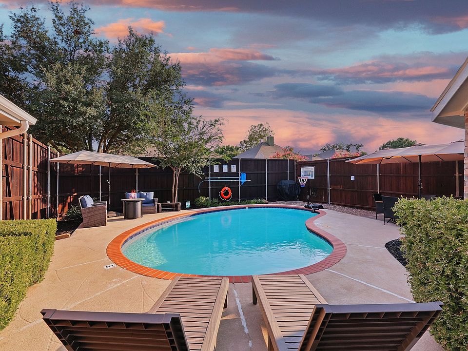 Whether you're looking to relax, work on your tan, or enjoy a refreshing swim in the pool, there's something for everyone in this backyard! Don't forget to toss some burgers and steaks on the BBQ grill for a tasty, alfresco meal!