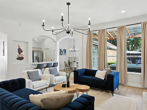 Featuring beautiful creams and luxurious dark blues, this living room offers you an upscale space to chat with friends and watch TV. Enjoy the comforts of the delightfully oversized couches section as you enjoy each other's company.