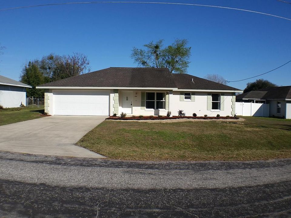 Great 3/2/2 block and stucco with Granite Kitchen. Adorable front porch for celebrating our wonderful Florida weather. Gorgeous new ceramic tile in main areas. Huge sliders out to back patio and fenced back yard. Open split bedroom floorplan with vaulted ceilings all freshly painted with brand new carpet ready for you to move right in and make it your new home. All walk in closets, pantry in the kitchen and full 2 car garage plus a large shed in the back. Great location just off 441 close to both Ocala and The Villages. Schedule your showing today.