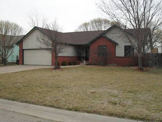 Great family home in Goddard Schools area features an updated oak kitchen with tiled counters/backsplash and floors,the rest of the main floor offers laminated wood flooring throughout, woodburner with gas start and spacious bedrooms, the laundry room is on the main floor. Master has a huge walk-in closet! Dining area steps out to a covered deck overlooking shady backyard and steps down to a sun deck, privacy fenced yard. Finished basement offers a family room, bedroom with big walk-in closet, plus room for a game room in unfinished side as well as plenty of storage. The shingles on this home were replace after the big hailstorm last fall and sellers had Heritage II type shingles installed!