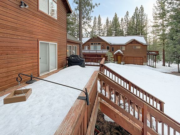 Welcome to your dream mountain getaway! Centrally situated in Truckee's Tahoe Donner, this spacious fully furnished home features four bedrooms, three baths, two living areas, an extra-large kitchen, a large deck with bbq, and a two-car garage. Located within walking distance of Tahoe Donner's most popular amenities--Trout Creek Rec Center, Snow Play Area, and The Lodge Restaurant--not to mention world-class mountain biking and hiking trails at the other end of the street, the house offers easy access to the many lakes, ski resorts, and outdoor adventures for which the high Sierras are famous. Love to cook? Even the most determinedly in-the-way partner can fit with you in this extra-large kitchen, or you can expand your meal prep to include the deck-top barbeque. Need to relax? Melt away your worries in the jacuzzi bathtub or take a quick walk down the street for the full steam/sauna/pool experience. Want to watch something different than the kids? Let them enjoy their tv in the upstairs den (or send them to adventure on the hiking trail at the far end of the backyard). Want to make sure your four-legged friends are treated as part of the family? We welcome cats and dogs! Highlights: Spacious house great for large groups and families. Fantastic Tahoe Donner location 550 feet from amenities. Flat driveway on an artery street for easy access in tricky weather; 2 car garage, driveway can accommodate at least 4 cars. Fully furnished, master bath with jacuzzi tub, vaulted ceilings throughout, decktop bbq, gas fireplace in addition to central heat, nest thermostat, bidets on downstairs and master toilets. Pet friendly. Can change den to a 5th bedroom if needed. 6 month or 1 year lease available. Tenant pays utilities (gas, electric, water, trash) and snow removal, pet deposit. No smoking. Tenant pays recreation access fee directly to Tahoe Donner HOA. Full lease sent separately upon request.