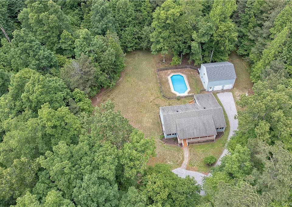 Looks can be deceiving as this home has space, space, and more space! A sense of tranquility abounds in this 1920 sq ft 3 bedroom, 2 bath cutie situated on 5.02+/- acres. Home offers a sense of carefree living with hardwood flooring throughout the living areas, a great room that opens to the dining area, an eat-in kitchen with oak cabinetry, a primary bedroom with a walk-in closet and its own bath, 2 additional bedrooms, and an office/study that could be a multi-purpose room or could easily be converted to a 4th bedroom if needed, as well as a laundry room. And there's more... Outside you will find a covered front porch, a 12X20 rear screened porch with easy access to the kitchen through French doors, a 14X28 inground saltwater pool, and a 32X28 detached 2 car oversized garage, with a finished upstairs! PLUS, there is an encapsulated crawlspace and a whole house generator! This is a must-see home!