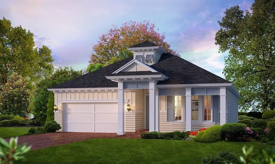 Under Construction. The Serena floor plan is a versatile, thoughtfully designed home that perfectly balances luxury, functionality, and comfort across a single, expansive level. Spanning 2,217 square feet with 4 bedrooms and 3 bathrooms, it provides ample space for both relaxation and entertainment. As you enter through the welcoming foyer, you're greeted by an immediate sense of openness and flow. The layout guides you naturally towards the heart of the home, where a stunning open-concept kitchen, living room, and dining area create a warm, inviting space to gather with family and friends. The kitchen is a chef's delight, boasting the “Deluxe Kitchen” upgrade, complete with a spacious center island that doubles as a breakfast bar, ample cabinetry, and modern appliances. This is where meal prep transforms into an experience, with room for everyone to gather, whether it’s a weekend brunch or a holiday feast. The nearby dining area is both intimate and accessible, ideal for nightly dinners yet spacious enough to host larger gatherings. Just beyond the kitchen, the living room invites relaxation with its bright, open feel, highlighted by tall 10-foot ceilings and large windows that let natural light pour in. This space opens onto the covered lanai, extending your living area outdoors and offering a tranquil setting to enjoy morning coffee, evening sunsets, or weekend cookouts.