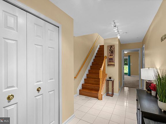 Situated with a backdrop of trees in coveted Hunters Run is this stunning move in ready townhome. Boasting gorgeous hardwoods, this home is outfitted with an open living room with a bright box bay window and a flow to the open dining room accentuated by a chandelier, and a breakfast room with a glass slider accessing the elevated 18’ deck with a retractable awning. The cook's kitchen boasts sleek granite counters, classic white raised panel cabinetry, stainless steel appliances, and a center island expanding your prep and counter space. Owner’s suite presents a cathedral ceiling with a lighted fan, a walk-in closet, and a private bath with marble surrounds, a separate glass enclosed shower, and a jetted tub. Walkout lower level displays a ceramic tile foyer entry with stairs to the main level, a family room with a brick surround wood burning fireplace, a glass slider stepping out to the paver patio and yard, extra storage, and room to grow. Close to Hunt Valley Golf courses, country clubs, NCR trails, and shopping, all within minutes of this home and community.