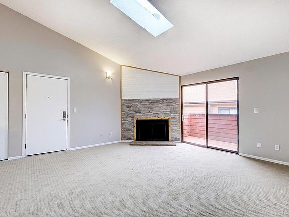 Beautifully remodeled 2 bedroom/2 bath upper lever condo with a detached garage. Nearly everything is brand new including all flooring, LED lighting, & paint. Open living room includes vaulted ceilings with skylight, wood burning fireplace with new tile surround, & a balcony with storage. Balcony was recently replaced by HOA. Kitchen has new granite counters with over sized under mount sink & tile back splash and new lighting, including under cabinet lights. Both bedrooms are spacious & include walk-in closets. Updated bathrooms with new plumbing valves, bath fixtures, vanities & beautifully tiled floors and shower surrounds. Washer & Dryer hookups in unit. Community pool, tennis & basketball courts, & dog park on premise. Near the light rail. Don't miss this one.