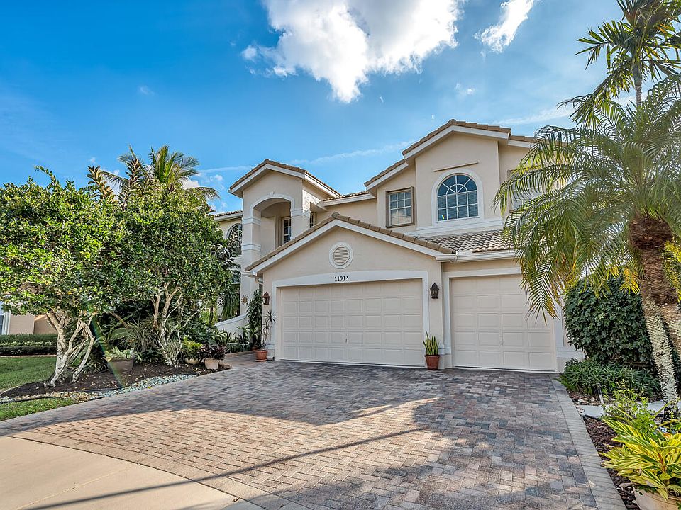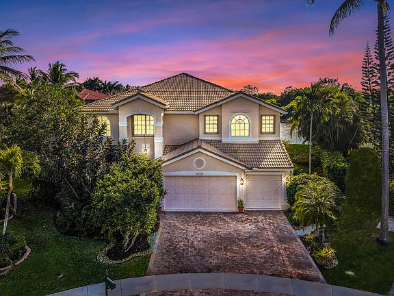 The sunsets and views from this beautiful home are spectacular! Come check out this 5 bedroom (1 full bed/bath downstairs) 4 bath Chateau Lafitte model built by GL Homes. It features a whole-home generator, expanded laundry/mud room, full length balcony off back of home used by 2 of the bedrooms, electronic screens by pool go up and down depending on desired use, 1/4 acre privacy lot on nature preserve and lake views from everywhere! It sits on a cul-de-sac - great for kids. It also has 2 newer wifi controlled ACs & wifi H2O heater, brand new impact entry door, a sitting room off primary bedroom, new pool pump aids the salt water-heated pool, new exterior paint job and more! Saturnia sits across from 2 A-rated schools and just outside the nicest park in Palm Beach, featuring a water park!