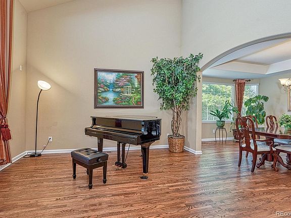 Stunning home backing to trail in sought after gated community of the Reserve at Cherry Creek Vista! As you approach this magnificent home you can't help but notice the wonderful features like the cul-de-sac location or the front porch where you can watch the neighbors go by. As you step inside the grand foyer with volume ceilings and curved staircase welcome you and the gorgeous hardwood floors beckon you to see more. The formal living room features amazing vaulted ceilings and flows seamlessly into the dining room with beautiful bay windows and into the splendid kitchen with Stainless Steel appliances, loads of cabinets and a sizable pantry. The family room is generous and flows to the kitchen and open breakfast nook and also features a gas fireplace and abundant windows. Also on the main level is the elegant study with French doors and built-in bookshelves plus a 1/2 bath and roomy laundry room. Upstairs you have a palatial master suite with tray ceiling and a great 5 piece bath with huge tub and marble countertops plus a striking master closet with custom organizers. 2 bedrooms are connected by a jack & jill bathroom and the guest suite has it's own 3/4 bathroom. The basement is unfinished but easily used as is or can be finished to your taste. Outside the paver patio is great for entertaining and overlooks the walking path that gives great separation from the neighbors and also connects to parks including Lakeview Park and even Cherry Creek State Park without ever needing to cross a street! This phenomenal neighborhood features a clubhouse with a community pool and hot tub, private tennis court, volleyball court and many trails. All located just a few blocks from Cottonwood Creek Elementary and the bus for Campus and Cherry Creek High picks up at the end of the park just 1 house away out your back gate. With the convenience of a DTC location and close to amazing restaurants and light rail it is easy to see why you want to be here!