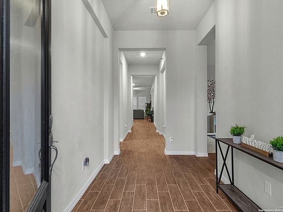 OPEN HOUSE: FRIDAY FEBRUARY 10th 2pm-4pm | SATURDAY FEBRUARY 11th 12pm-3pm. Welcome to this pristinely gorgeous single story open concept home. This house has 4 nice sized bedrooms and 3 full bathrooms. One of the guest bedrooms has its own full bath and large closet making it a perfect option for a mother-in-law suite. Secondary bonus living room connects the two bedrooms offering an ideal space for a game room or play room. Extended entry way leads to open concept kitchen, family room, and dining area. This spacious kitchen includes 42" extra white cabinets and granite countertops throughout, stainless appliances, counter-space galore and a large beautiful island with built-in seating. The master bedroom is tucked away in the back of the house allowing privacy. The ensuite bathroom includes a beautiful walk-in shower and large walk-in closet. Beautiful vinyl plank flooring throughout common areas with large windows offering great natural light. Washer, dryer, and fridge all convey. Large backyard with covered patio. Located in the front of the subdivision making easy access in and out. House is within walking distance of park, pool, and high school. Easy access to 1604, close to major shopping areas and Sea World. 15 minute drive to Lackland Air Force Base.