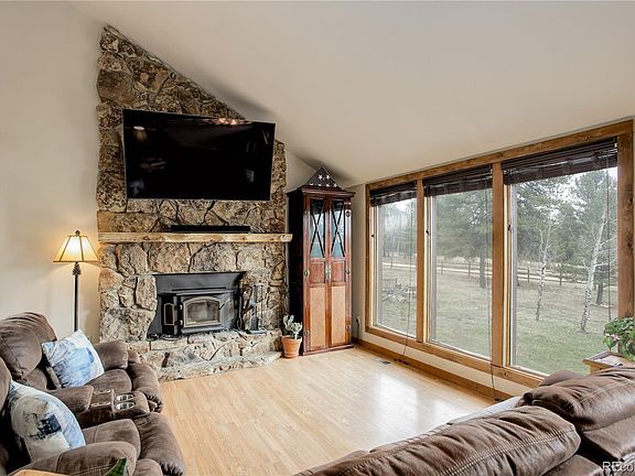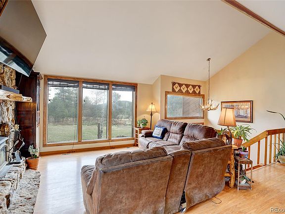 Serene Mountain Sanctuary by Staunton State Park. Private, paved, gated driveway welcomes you to this lovely 3 bed, 3 bath, 2,054 sq ft home on over 1 fully fenced acre. Great mountain views and located directly across from Staunton State Park. Newer permitted 24 x 32 ft shop/barn with heat, electric and car lift! Vaulted ceilings on the upper level with ample windows make this open-concept, bi-level home light and bright. In the family room, the wood panel wall and moss rock wood-burning fireplace are cozy and inviting. The open kitchen with gorgeous wood cabinets, granite counters, stacked stone backsplash, slate floors, newer black stainless appliances (no fingerprints!) is well configured and opens onto the dining area for easy living and entertaining. The large wrap-around deck, showcasing spectacular views of the mountains and Staunton State Park, is the perfect spot for enjoying the Colorado outdoor lifestyle and barbeques with guests. The upper level features the primary ensuite with dual closets and a beautiful updated ensuite bath. There are also 2 additional bedrooms and 1 full bath on the upper level. The lower level offers a bonus room (currently used as a bedroom) with a pellet stove, laundry room and access to the attached 2 car garage. The deck is gated and opens onto the backyard complete with a hot tub. There is also a convenient shed for storage. HIGH-SPEED INTERNET coming this Summer!!! Enjoy peaceful, private mountain living with close access to 285, shopping, restaurants and top ranked schools. Welcome to your beautiful new mountain home.