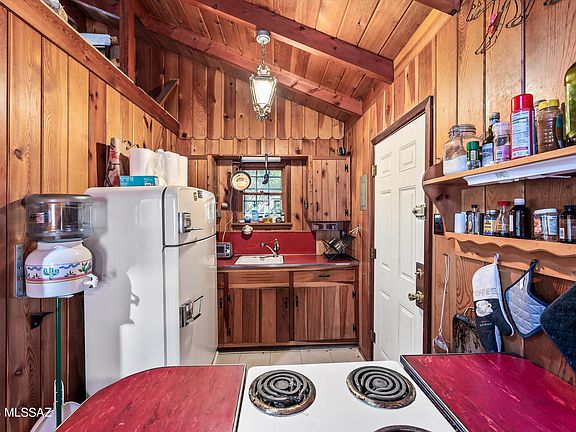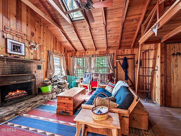 Charming retreat on Forest Service leased land in beautiful Mt Lemmon. This adorable home with an open loft is a nature lover's dream! Offering year-round access so you can enjoy the serenity of the wilderness at any time. The heart of this rustic abode is a charming wood fireplace that adds warmth and character to the living space. A perfect place for a cozy getaway.
