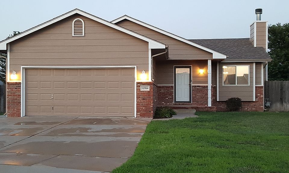 You talk about a Westside WOW! If you want a little bit of city mixed with a little bit of wide open spaces, you get the best of both worlds in this fairly new home located off of 119th Street and West Pawnee, in the Goddard School district! Completely updated inside and out, this beauty hosts a freshly painted front porch to greet you into a large open floor plan of new dark hardwood floors, real wood-burning fireplace, new light fixtures, and much more! The kitchen boasts very nice stainless steel appliances, including a new dishwasher and a refrigerator with ice maker! Upstairs boasts a full bathroom, three nice bedrooms including a master with double closets and a private bathroom. Plenty of light and closets abound! The basement is a wonder - and so spacious! Fully carpeted recreation room with private enclave closet for projects or computer equipment, an entire separate area for a great office, and a huge bedroom with closets to make a great guest room! The full bathroom was just completed and has amazing character such as real tile flooring, stone backsplash, modern sink, stool and new bathtub. The house hosts a 2 car garage with opener, and a full privacy fence, complete with a shed in the spacious yard. The double deck, partially covered and large enough for big gatherings, really make a statement. Bonus: LAWN CARE IS FURNISHED! That's right! No sweating and taking all day for you!! This home is located near major employers such as Bombardier, Cessna, Home Depot, Kroger and epicenters like New Market Square, Dwight D. Eisenhower airport and more! The neighborhood has a great lake with walking trails for miles, a basketball court and more. Do not miss this home! Discount for a longer term lease available.