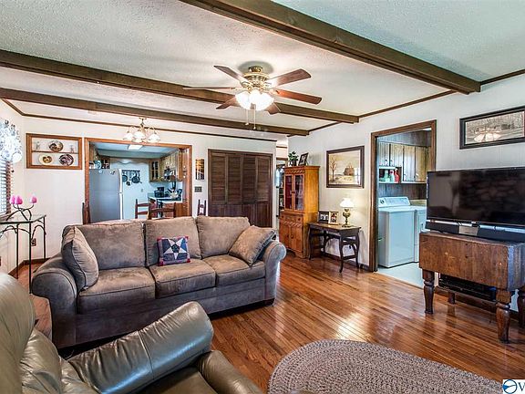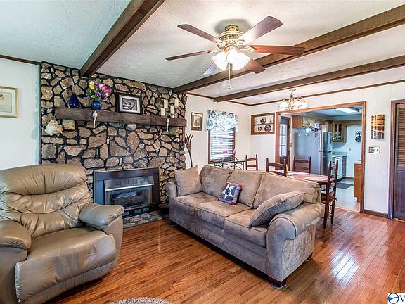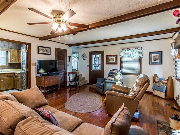 Adorable starter home! 2 Story Bungalow with cedar siding. The cozy family room has a stone fire-place with gas logs and pretty exposed beams with hardwood flooring. The galley style kitchen is furnished with a refrigerator, range, microwave and dishwasher. Kitchen cabinets are oak. Main level has 1- bedroom and 3/4 bath. 2nd level has 2 beds and full bath. A 12x30 deck has been added that is perfect for enjoying that 1st cup of coffee while watching the beautiful wildlife. The detach garage is oversized & an additional workshop and building are perfect for storage or RV parking. Front yard has an irrigation system. Purchase includes washer, dryer & 42"mower Storm shelter is also a plus!