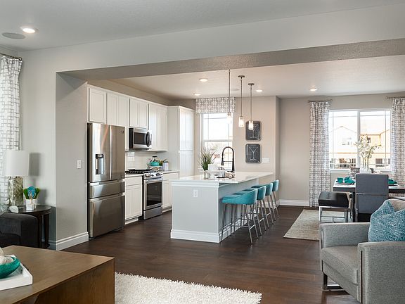 Photos are of model home. This home is estimated to be completed in September. This home features espresso cabinets and granite countertops throughout the entire home. The Wyatt floorplan offers an open concept main floor layout with vinyl plank floors spaning the entire main floor. The dining room flows seamlessly into the kitchen with a large granite center island for added seating. Just off of the kitchen you will find your spacious living room and access to your low maintenance backyard. The main floor also offers a powder bath, a large understair storage room and built key drop in the mud room for added storage and organization. A 2 car garage is located just off of the mud room. As you make your way upstairs you will find your master suite equit with a 5 piece deluxe master bath and walk in closet. Up the hall you will find your laundry room with upper cabinets, a spacious loft with beautiful black metal railings, a secondary full bathroom shared between your 2 secondary bedrooms. Outside of your home, enjoy your low maintance lifestyle while the HOA takes care of all of your yard work, mowing & snow removal!
