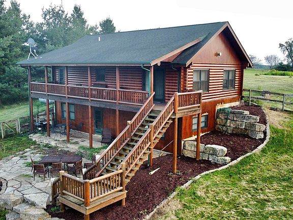 Quiet, country living with this updated 3 bedroom, 2 bath home surrounded by beautiful views of the rolling countryside including 23.17 +/- acres of its own! Set back off the road and perfectly placed to overlook the valley below, this cabin and property is being offered fully furnished and turn-key. Main floor features an open floor plan with vaulted ceilings that combines as the living space, dining space and kitchen. Granite countertops and beautiful kitchen cabinetry match the cabin vibes perfectly. A sliding door of the dining space leads out to a covered deck that overlooks the property and beyond. Two bedrooms and an updated bathroom round out the main floor. The lower level holds a 3rd bedroom, another living space, another updated full bath and several storage space. Radiant in floor heat warms the entire walk out lower level. Equestrian lovers take notice-this property has a 44 X 26 horse stable complete with stalls, tack room, and multiple pasture options. In addition to the stable, a 48 X 32 pole building with concrete floors and three overhead doors is sure to store all of your property maintenance equipment and toys. This property offers endless possibilities including, but not limited to, the perfect equestrian setup with acreage, a cozy weekend getaway cabin, a full time country home and a great hunting getaway. All new stainless kitchen appliances in fall of 2022 and new water heaters were installed November of 2023. Included in sale is a 2022 John Deere 1025R compact tractor with low hours. Tractor included a 60" mower, front end loaded and rake. Property is located 3 hours from downtown Chicago, 35 minutes from downtown Galena, and 1 hour 15 minutes from the Quad Cities. Country homes with this amount of acreage are hard to come by so schedule your showing right away! Square footage measurements are approximations and to be verified by buyer/buyers agent.