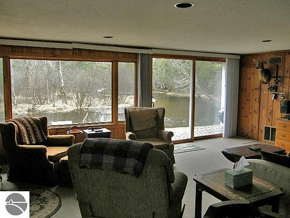 The riverfront cabin you have been looking for on nearly 14 Acres with over 1,000 feet of river frontage! Private, secluded cabin alongside one of the best known trout fisheries in the Midwest! That is right! This cabin is situated along the bank of the Little Manistee River which boasts seasonal runs of Steelhead and Salmon not to mention the spectacular Brown Trout fishery! This river frontage is awesome - low bank frontage with a deep fishing hole right in front of the cabin! This natural setting is sure to remain private due to the topography and the layout of the land. The cabin features 3 bedrooms, 1 1/2 baths and an open-spacious living room with natural wood burning fireplace, all the cozy amenities of home! There is even a 3 season porch overlooking the river! This cabin would be great for entertaining too! River offers excellent kayaking and canoeing opportunities and the snowmobile trail system is within riding distance from the cabin. The Little River Casino and Caberfae Ski Resort all within 20 minutes from this cabin. 1,000s of acres of U.S.A land in the area.