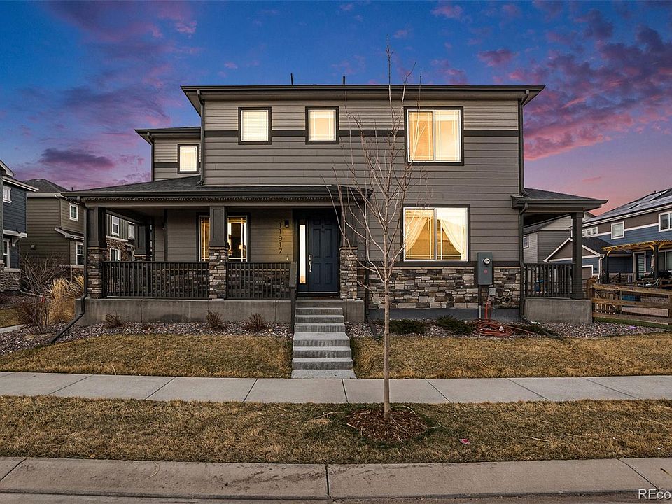 Step inside this inviting two-story home nestled within the Buffalo Run golf community, a serene haven where comfort meets sophistication. The main level unfolds in an open floor plan, where natural light dances on luxury vinyl hardwood floors leading you through the versatile living spaces. The heart of the home is the kitchen, a chef's delight with gleaming stainless steel appliances, elegant granite countertops, and a generous island that invites conversation and culinary creations. Also, the sizeable walk-in pantry elevate the space, making organization a breeze! Adjacent, the family room radiates warmth with a stylish gas fireplace and sliding glass doors that beckon you to a covered patio—perfect for Colorado evenings. The dining area promises to host your memorable feasts, while the convenience of a large walk-in mudroom/coat closet and a discreet half bath complete the main floor's thoughtful design. Ascend to the upper floor where the primary bedroom is a restful retreat, boasting a spacious walk-in closet. Indulge in the spa-like ambiance of the en-suite 5-piece bath, featuring an expansive shower for tranquil starts to your day. Two additional bedrooms promise rest and rejuvenation, one with a walk-in closet, sharing a full Jack-and-Jill bathroom. Plus, with the laundry room thoughtfully placed upstairs, everyday chores become effortless. There is plenty of extra storage space in a 4-ft crawl space with a footprint of the entire first floor! Living here means more than just enjoying a beautiful home—it's a lifestyle. You're minutes away from the Buffalo Run golf course and vibrant Reunion and Bison Ridge Rec Centers, a stone's throw from local shopping and dining, and have easy access to I-76 and E-470 . Whether you're unwinding in the serene living spaces, entertaining under the stars on your patio, or exploring the community's amenities, this home is a canvas for your life's next chapter. Come, envision your new beginning. Virtual tour available