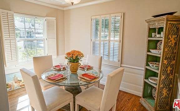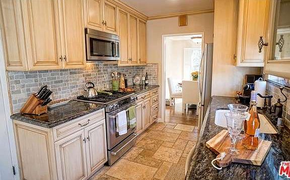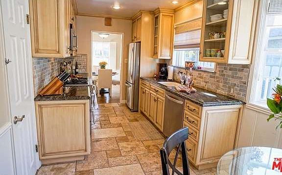 Gorgeous Cape Cod Traditional. 2 Bedrooms 2.5 Bath + Den. House boasts oversized bedrooms with pitched ceilings, remodeled tuscan kitchen with beautiful cabinets, granite countertops and stainless steel appliances. 2 fireplaces, refinished wood floors, crown moldings. Detached finished garage previously used as pilates studio. Large patio and private backyard are excellent for entertaining.