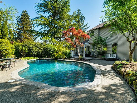 Splash into summer in this gorgeous custom home on your private half-acre retreat. You will enjoy the beautiful black bottom pool surrounded by lush landscaping, decks, patios, and a hot tub...perfect for entertaining. Enter this stunning property down a quiet lane that leads to a large circular driveway where you will find ample parking for all of your party guests! Step inside the generous entryway with open views throughout this light-filled home. Hardwood floors grace the entire house on both the main and upper levels. The inviting living and family rooms feature gas fireplaces with back-lit ambiance lighting for a welcoming glow. The gourmet kitchen boasts an island with seating and a breakfast nook open to the family room with views to the pool. A main floor den provides a dedicated work space if you can resist gazing into the stunning yard through the wall of windows. The best feature of this home is its 500 sf bonus room/rec room/art room/music room/guest room/separate living quarters. This multi-purpose space boasts two large closets, a wet bar with cabinetry, a free-standing gas fireplace, and an outside entrance to the patio. Upstairs you will find a spacious, well-appointed primary suite, two additional bedrooms, and a laundry room. There is an incredible amount of storage in this home with closets hidden away in every nook & cranny. Bring all of your toys - the garage is oversized plus the property has parking for your boat or RV! Conveniently tucked between Lake Oswego's Mt. Park and SW Portland's Arnold Woods, you will love the many amenities this location offers. Just minutes from Tryon Creek trails, New Seasons Market, shopping, parks, and transit; this home delights in the best of both cities yet it feels miles away! [Home Energy Score = 2. HES Report at https://rpt.greenbuildingregistry.com/hes/OR10215070]