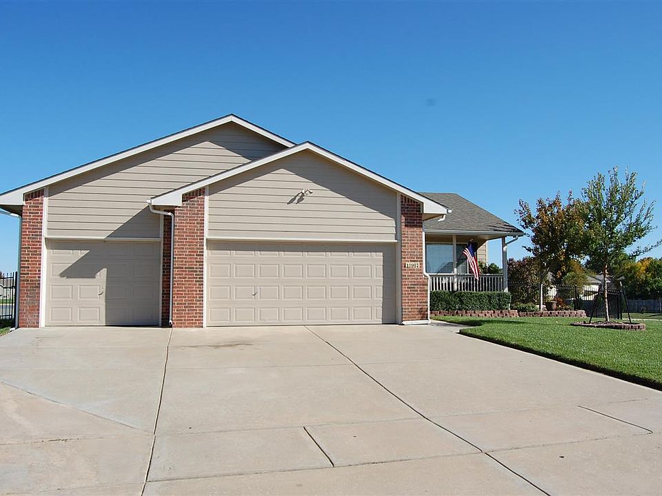 Ranch home located in the Maize school district. Located on a cul-de-sac and lake lot with a east facing fenced backyard. The main floor is very open with a main floor fireplace and an eating bar in the kitchen with a view to the lake. The main floor has 3 bedrooms, one being the master which has its own bathroom. There is also main floor laundry. The basement is finished with viewout windows, a large family room, a 4th bedroom and a full bath. There is a well and sprinkler system and the 3 car garage is a little oversized. The AC unit is approx. 2 years old and has only a 3 year old roof. The lake has a walking path and is located a block away from the neighborhood playground. Just 5 minutes from New Market Square. The specials are almost gone and will pay out in 2016 and 2017. This is a great family home and neighborhood in Maize schools and West Wichita.