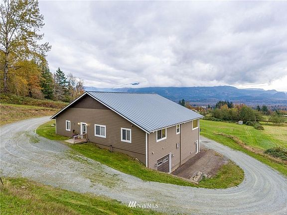 STUNNING VIEWS from this beautiful one-owner RAMBLER nestled in a private setting. Versatile open floorplan w/ 3 BEDROOMS + lower level w/ sep entrance for MIL potential or poss multi-generational living. The layout allows plenty of room & good flow for entertaining or simply enjoy time sitting on your DECK watching the sunset. Massive SHOP/garage in basement, large enough for 10 (yes, 10!) cars/toys, yet not overwhelming in appearance. This 5 ACRE parcel begs the hobby farm lifestyle. Calm!