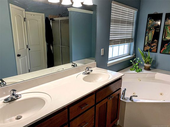 Great 3/2/2.5 car garage home in Fox Hollow-North Bixby that backs to greenbelt. New exterior paint, HVAC, carpet, fence, hot water heater. Kitchen with large granite island open to vaulted living room with fireplace. Separate dining area with built-ins. Beautiful den with high ceiling and French doors. Huge master with vaulted ceiling, master bath with dual vanity, whirlpool tub/separate shower, separate toilet, and walk-in closet. Two additional bedrooms with big closets and a hall with tub/shower