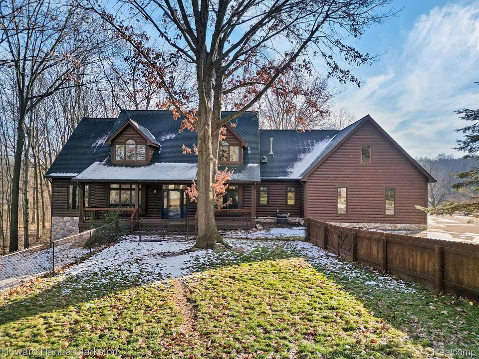 Welcome to your own private retreat. This stunning log cabin offers the perfect blend of rustic charm and modern luxury. Step inside and you're greeted by an abundance of natural light pouring through the open living spaces. Continue to the generous kitchen featuring stainless steel appliance, island & large pantry. Don't miss the great room with soaring high ceilings creating an open and inviting atmosphere throughout. main floor in-suite with soaking tub, spacious shower & massive W/I closet. Upstairs you'll find 2 in-suite spacious bedrooms, and a loft providing additional space for a home office, den, or play area. The walkout lower level boasts an elegant wet bar and plenty of space for entertaining or unwinding. You'll appreciate the 3+ car garage, providing with E.V. plug ins & ample storage for vehicles, tools, and outdoor equipment. Also an additional bedroom, full bath & work out room. Spend your evenings on the enormous covered porch enjoying the tranquil surroundings. The custom paver walkway adds a touch of elegance and character to the exterior. Fenced area for you convivence. Conveniently located close to everything you need, yet you'll feel like you've entered your very own secluded retreat. Don't miss your chance to own this incredible log cabin on over 2 acres with natural pond. Come and experience the serenity and beauty of this unique property. It's time to make this your forever home.