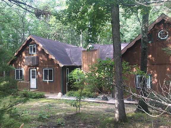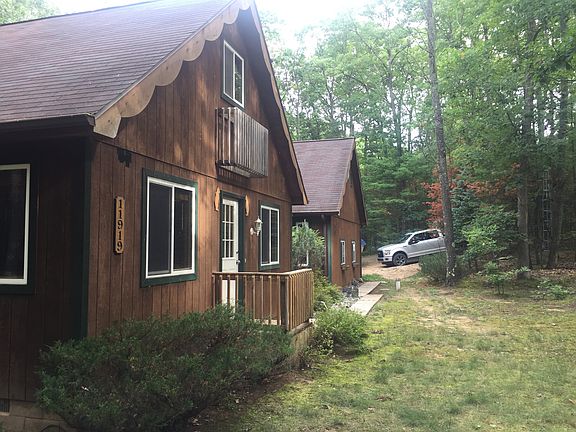Nestled in the woods is this beautiful cabin that has gorgeous finished pine accents throughout, a loft, a spacious bedroom upstairs, and master bedroom downstairs. The home has a living room and family room giving more space for entertaining and a pretty brick fireplace as a focal point in the family room as you enter into the home. The large garage has a bonus area that has been roughed in for storage. The house has air conditioning and gas forced heat making this a vacation paradise or full time home. The deck off the living room leads out into a natural setting because the home backs up to acres of woods to give you privacy and quiet starry nights. The cabin has been well maintained, has a new furnace and wood mini blinds throughout. This home is turn key ready and is waiting to be your happy place. Call 586-344-9172 for an appointment to see it.