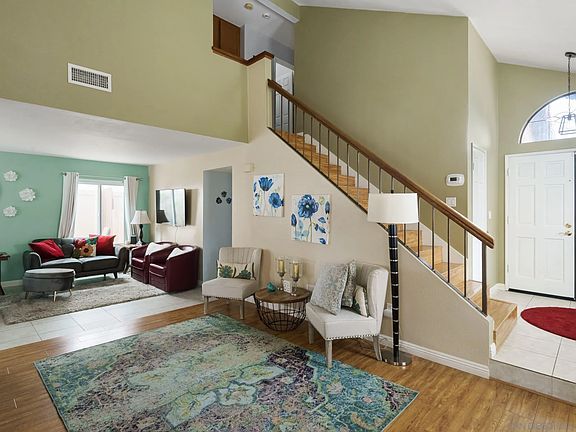 This attractive two-story home on a Rancho San Diego cul-de-sac features a semi-open concept, remodeled bathrooms downstairs, newer flooring, a dining room, living room, family room, and a breakfast nook. The master suite includes an ensuite bathroom and a large walk-in closet. The backyard is perfect for hosting, with a private/quiet setting, pergola, and a new hot tub. The HVAC system is only a few years old, and the appliances are included.
