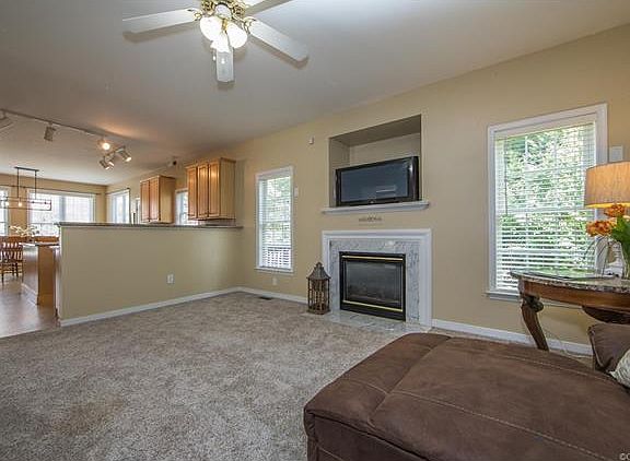 Spacious and updated with a modern open flow from the eat-in kitchen with granite counters and tile back-splash to the family room with gas fireplace, this 4 BR, 2.5 BA home features a fabulous master suite with adjoining sitting area. Three additional bedrooms, all with fresh new carpeting and double closets provide ample space for family or overnight guests. On that same level off the landing is the entry to both walk-in and walk-up attics. Easy access, storage galore! The walk-up attic has the potential for additional finished space. Hardwood flooring graces the living room, foyer, stairs and dining room with wainscoting and crown molding. The nook near the first floor laundry and garage entry would make a perfect drop zone for knapsacks, books and boots. Both 2-legged and 4-legged family will revel in the deck and privacy fence surrounding the large rear yard. Where would you put your hammock? Full irrigation, newer HVAC systems, brand-new roof! Might be the best layout in Rivers Bend! Terrific Rivers Bend amenities.
