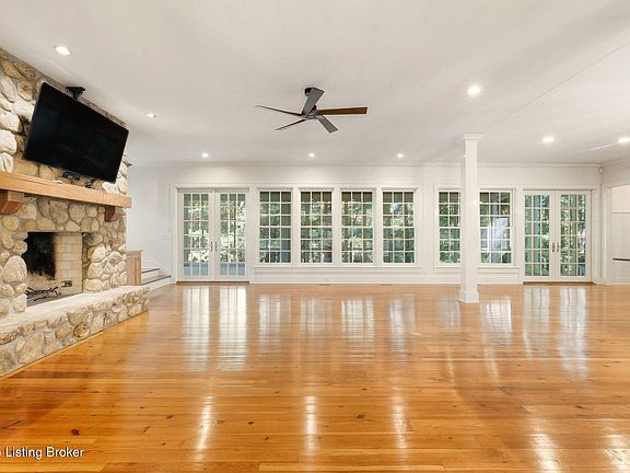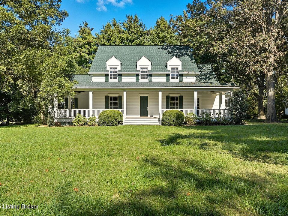 Set on two beautifully maintained acres just outside Anchorage, this stunning Cape Cod combines timeless charm with modern comfort. Filled with natural light, the open floor plan showcases gleaming ''whiskey wood'' hardwood floors, a spacious first-floor primary suite, and a stone wood-burning fireplace that adds warmth and character. Upstairs offers three additional bedrooms, a cozy sitting area, and ample closet space. The bathrooms feature classic white subway tile for a clean, timeless look. The partially finished lower level includes a workout room and a comfortable sitting area with a gas fireplace — perfect for relaxing or movie nights. Enjoy peaceful views from the large screened-in porch overlooking the private, park-like yard. Additional highlights include a two-car detached garage, white Hardie Board exterior, and a newer roof replaced just two years ago. Located just beyond the Anchorage school district, this property offers the area's signature charm and natural beauty with easy access to schools, parks, and local conveniences. A rare opportunity to own a meticulously maintained home in one of Louisville's most desirable areas.