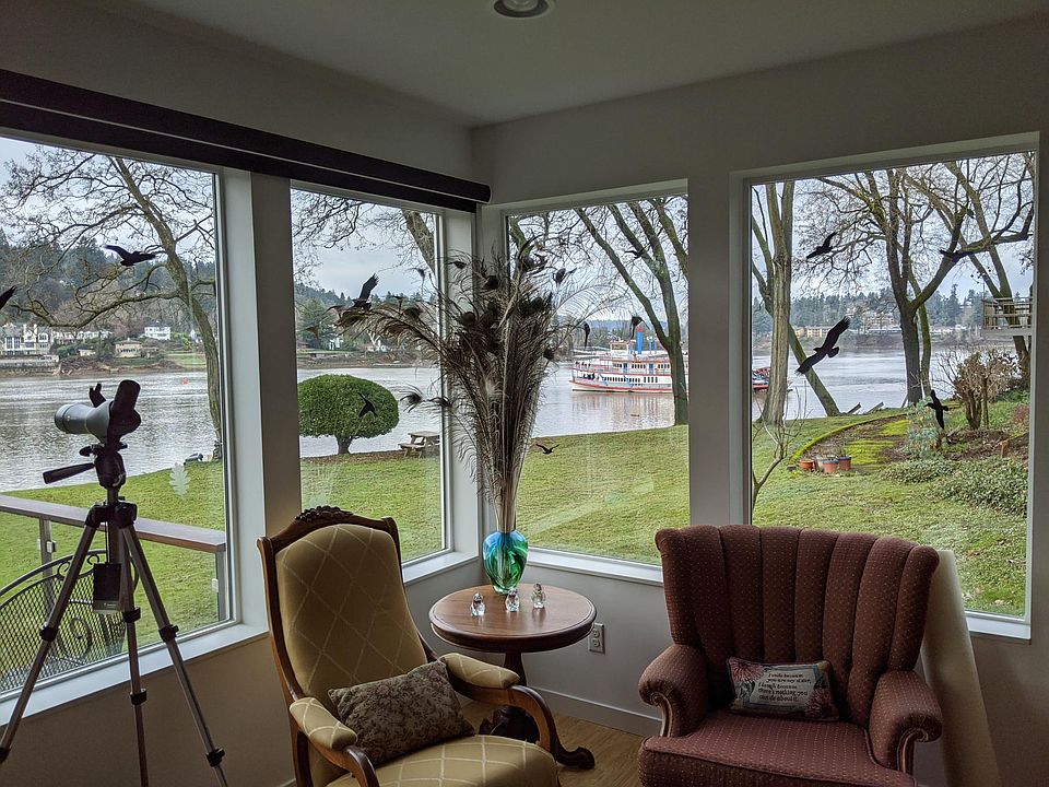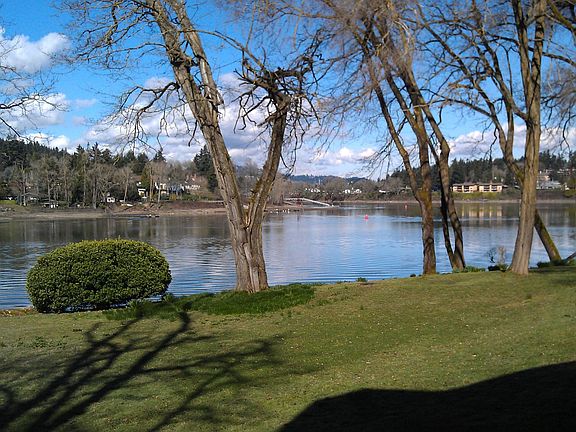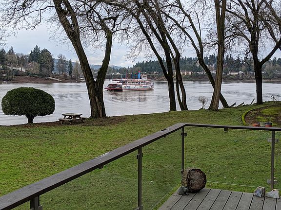 RIVERFRONT Apartment One of a kind, exquisite, architect designed riverfront duplex in a park like setting. This lower level apartment is only 6 miles from downtown Portland and a 1/2 mile to downtown Milwaukie and the Max transit station. Walking and biking trails are connected at both ends of the 4 block long avenue where this house is located. Large windows allow panoramic views from the master bedroom, living room, dining room and kitchen. The view is the Willamette River along Elk Rock Island, Dunthorpe and Peter Kerr Botanical gardens across the river and up to the Waverley Country club and OHSU. The master bathroom has a custom walk-in shower with a river view window, a rain-head spray from the ceiling, a hand held sprayer and body spray heads along the wall. The large deck with glass balusters is overlooking the Willamette river and has stair access to the yard and river steps. Elk Rock Island Park, Spring Park and Kellogg park are all within a few minute walk. There is easy walking distance to banks, restaurants, Post Office, etc. in downtown Milwaukie. Amenities include: Hydronic radiant floor heating throughout (warm toes), glass top stove, stainless steel refrigerator with bottom freezer, drinking water filter/dispenser built into the kitchen sink, laundry closet with washer and dryer hookups. Electricity, gas, water and garbage are the utilities which are an additional $250 per month. Early move in can be negotiated.
