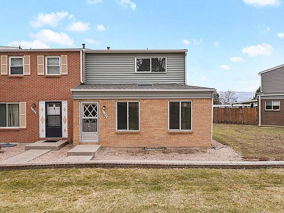 Sweet, end unit townhome and view of Pikes Peak off the back! 3 Bedrooms, 2 Baths, Fenced, Covered Patio Area, & 2-Car Covered Carport. Kitchen features a 5-burner, double oven stove, tile backsplash, wood laminate floors & walks out to patio. Main level bedroom/office with walkout and 3/4 bath. Nice big living room with laminate wood flooring. 2 Bedrooms upstairs with new nicely updated bath with double vanities, tile shower. Newer windows. Large unfinished basement, perfect for workshop, workout or finish to your liking. Washer and Dryer stay. Convenient location, close to Powers corridor for shopping, dining and entertainment. Very close to Peterson and Schriever.