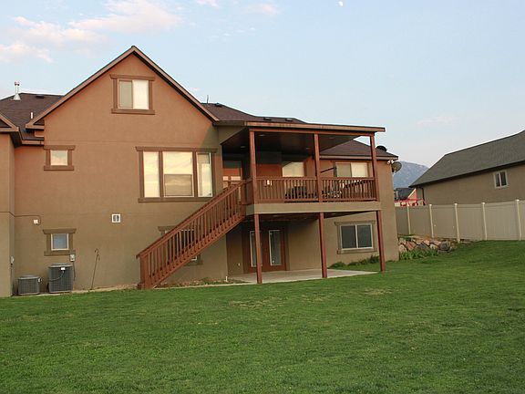 Gorgeous custom home. Granite counter tops throughout. Slate and hardwood floors with stone arches, large closets and an awesome covered deck, Walk-out basement. Full landscaping, Park close by with splash pad, Amazing neighborhood on a quiet street! This is an executive home. Beautiful kitchen great for entertaining; large master suite on the main level, and it's close to I-15 for easy access. Stunning architecture, brilliant design, and inspiring panoramic mountain and lake views. Dustin (435) 590-5473