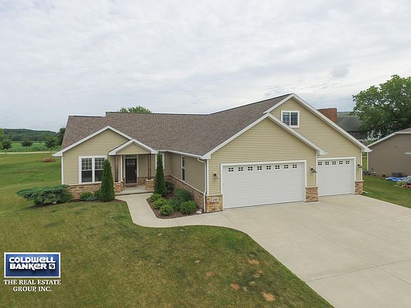 Stunning and Modern open concept split bedroom ranch home in desirable Howard area! Gorgeous kitchen with espresso cabinets and huge contrasting white center island/snack bar with silostone countertops, limestone backsplash and stainless steel appliance package included. Living room/kitchen and hallways with dark hardwood floors. Living room features a ceiling fan, cathedral ceilings and fireplace plus open staircase to the lower level. Master suite with soaring cathedral ceilings, tons of light, great walk in closet and private master bath with granite dual vanity and tiled walk in shower. Bathrooms all feature granite and oversized tile. First floor laundry with cabinets and hanging rod. You will love to hang out in your newly finished lower level with exposed windows that includes a 4th bedroom, full bath and an awesome rec room with wet bar and contemporary backsplash, wine rack, refrigerator and tiled floor. Don't forget about a flex/office/playroom space with French doors. Bonus rec room upstairs with a closet could be the 5th bedroom. 3 Zone heating, surround sound, central air, transom windows, Tons of natural light, storage and more! 3 stall garage that is finished and insulated. Covered back porch with fan. No rear neighbors, backs a neighboring properties orchard and is Near Parks and loads of trails. LL Sq. ft. per seller. Must see to appreciate!