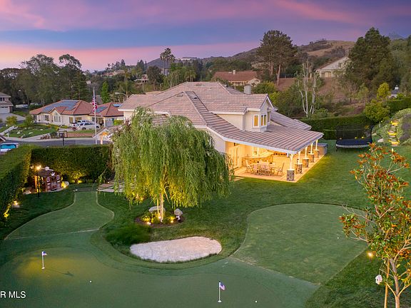 Fabulously upgraded Deer Ridge 4 bedroom, 4 bath estate home with 1/2 acre entertainer's dream, where no expense was spared! Stone pathways and private manicured yards surround the home and the 1/2 acre backyard park has a 3 hole golf course, covered (heated & cooled) patio, outdoor serving area and concert like premier sound system. Inside through the large iron front door and foyer, you are greeted by class and sophistication! Steps down the hall are the eloquent dining room, comfortable family room with serving bar area and an exquisite chief's kitchen. Complete with farm sink, counter space, storage, island, seating, stack stone & Wolf appliances. Upstairs the bedrooms are amply sized and remodeled but the luxurious main bedroom with fireplace and marble tub and shower bathroom speak for itself! Solid Hickory wood flooring throughout, recessed lighting, surround sound and a 4 zone air conditioning system with 3 additional mini split systems add to the charm. If that's not enough, there is a downstairs 8 person movie theater and a whole house backup generator with individual propane system to ensure things always run smooth! The 4 car garage with 2 car lift has a separate bath and outside shower that complements the 3 car garage and salon! This exceptional home has many more upgrades and amenities that must be seen to be believed! Finally, it borders the national park in the Santa Monica mountains, Hidden Valley, Sherwood Country Club and the beaches, which make this a true one of a kind oasis!
