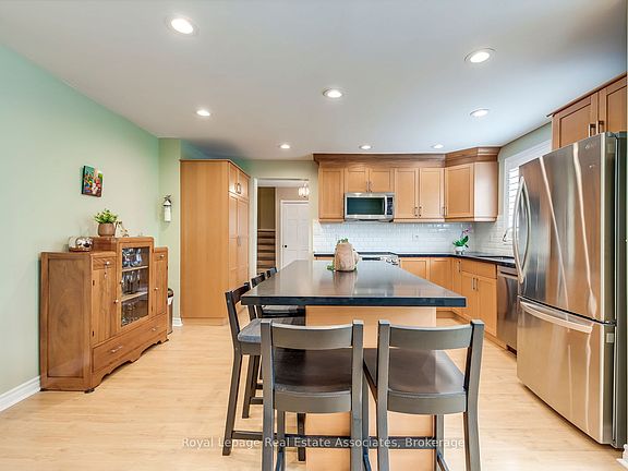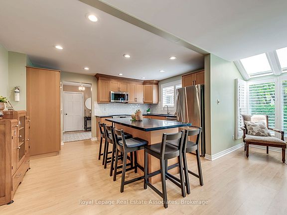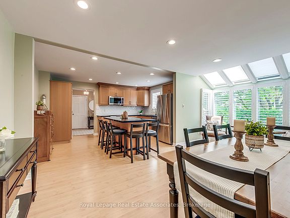 Amazing Freehold townhouse in Lorne Park School District with 1771 sq feet + finished basement with walk out to garage. Recently renovated kitchen with large island, quartz counter tops, SS appliances and potlights, overlooks large sun-filled, open-concept dining and sitting areas. A perfect space for entertaining your family and friends. Cozy living room has a wood burning fireplace with a walk out to large private deck. Three spacious bedrooms on the upper level with high ceilings. Primary has 3pc en-suite and w/in closet. Ren'd basement has a new 2 piece bath & vinyl floors, laundry room, walk out to garage. Enchanting, private garden with dining area and plenty of space to relax. Extra 15 hr parking on street. Close to all that Port Credit, Lorne Park and Clarkson have to offer for dining and shopping, transit, QEW parks and trails.Furnace/AC approx 5 yrs, Appliances 2 years, roof est 7 yrs, just move in and enjoy!