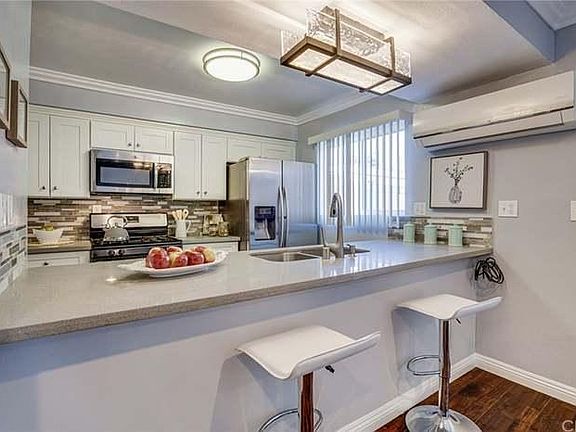 Huge Price Reduction!!! Standard sale, no waiting... This is a turnkey remodeled bottom single level unit!!! 2 Bedroom/2 bath condo is located in the Heart of Tustin. It offers Beautiful dark laminate flooring with contemporary tile in both the master bath bathroom and guest bathroom. The kitchen won't disappoint your fussiest buyer with gorgeous new white cabinetry, glass back-splash and quartz counter tops, stainless steel appliances and much more. Kitchen faces a spacious living room with counter top bar. At the center of this is a beautifully tiled Dark Gray fireplace and fresh new paint with cool tones throughout the home. New double pane windows including a slider that leads into a very low-maintenance rear patio which has plenty of space for a BBQ, patio furniture and large enough for a pet. Centrally located within a few minutes of many of the areas top and highly rated restaurants as well as some of California's best shopping and sandy beaches. Conveniently located with easy access near the 5 and 55 Freeways. Don't miss this opportunity.